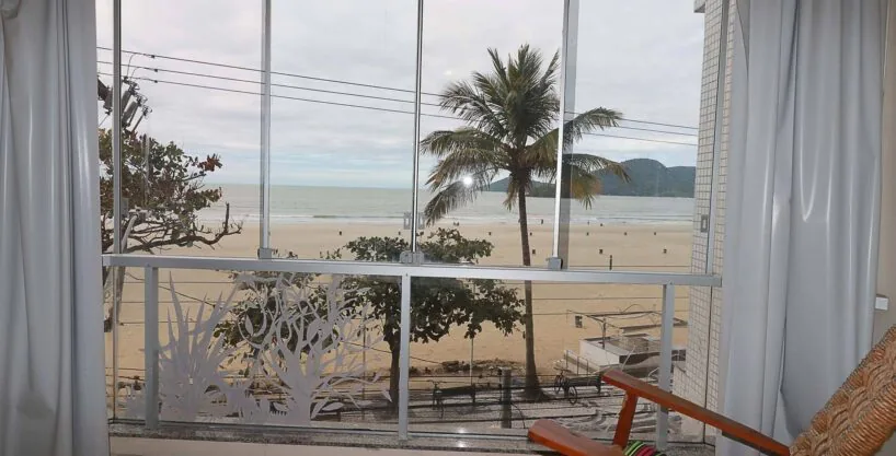 Dois dormitórios e um banheiro social, sendo um com vista para a praia